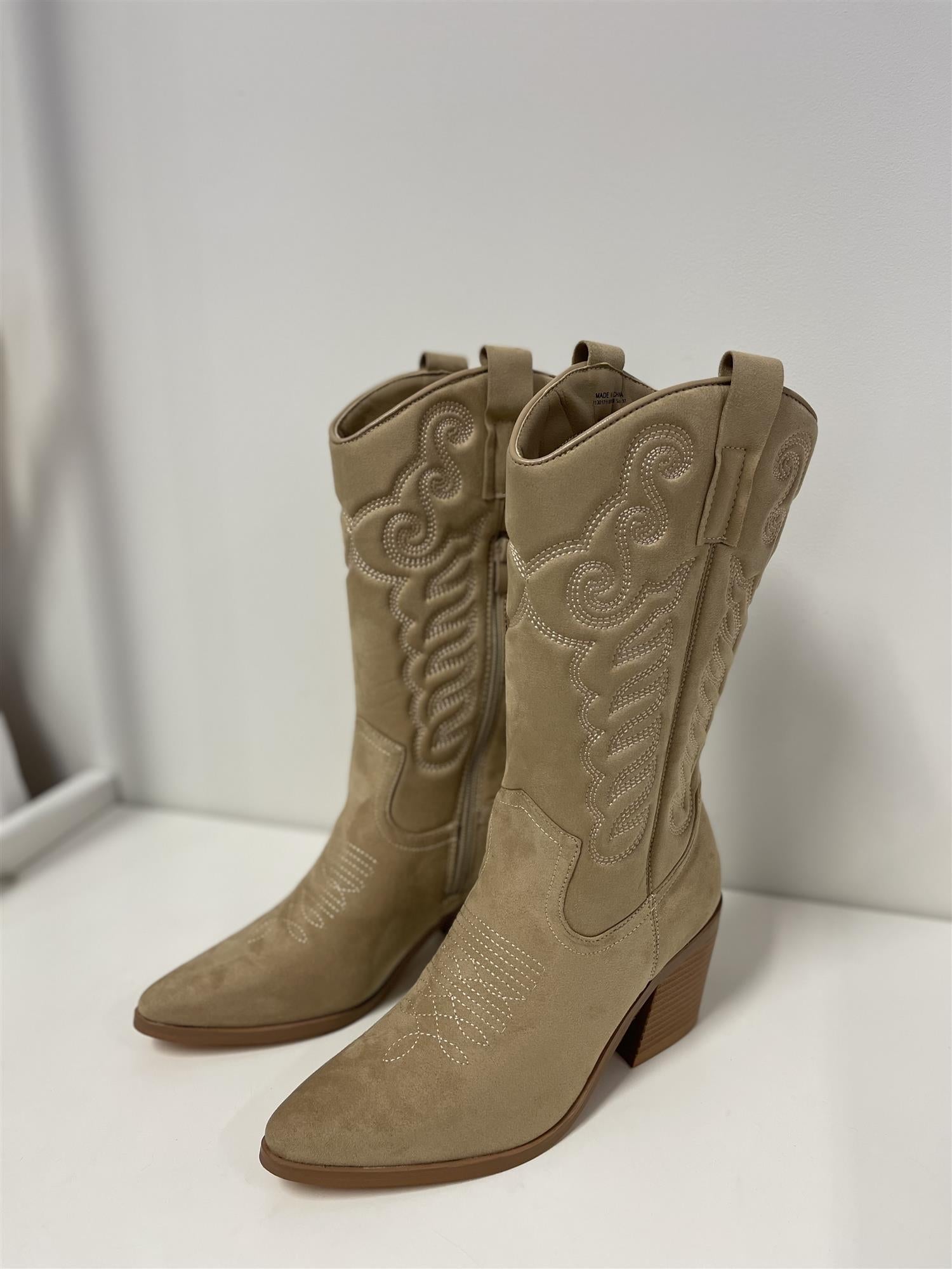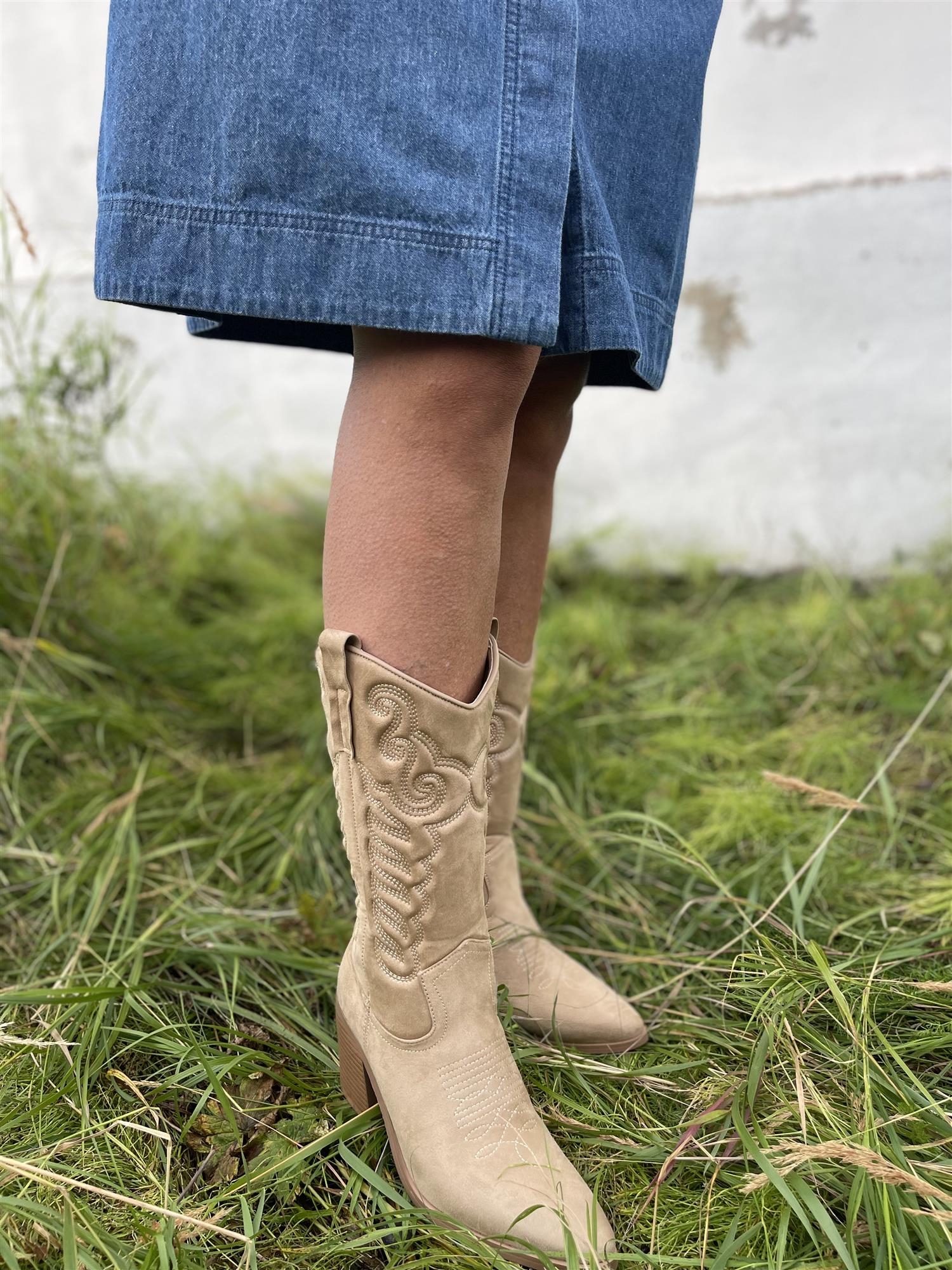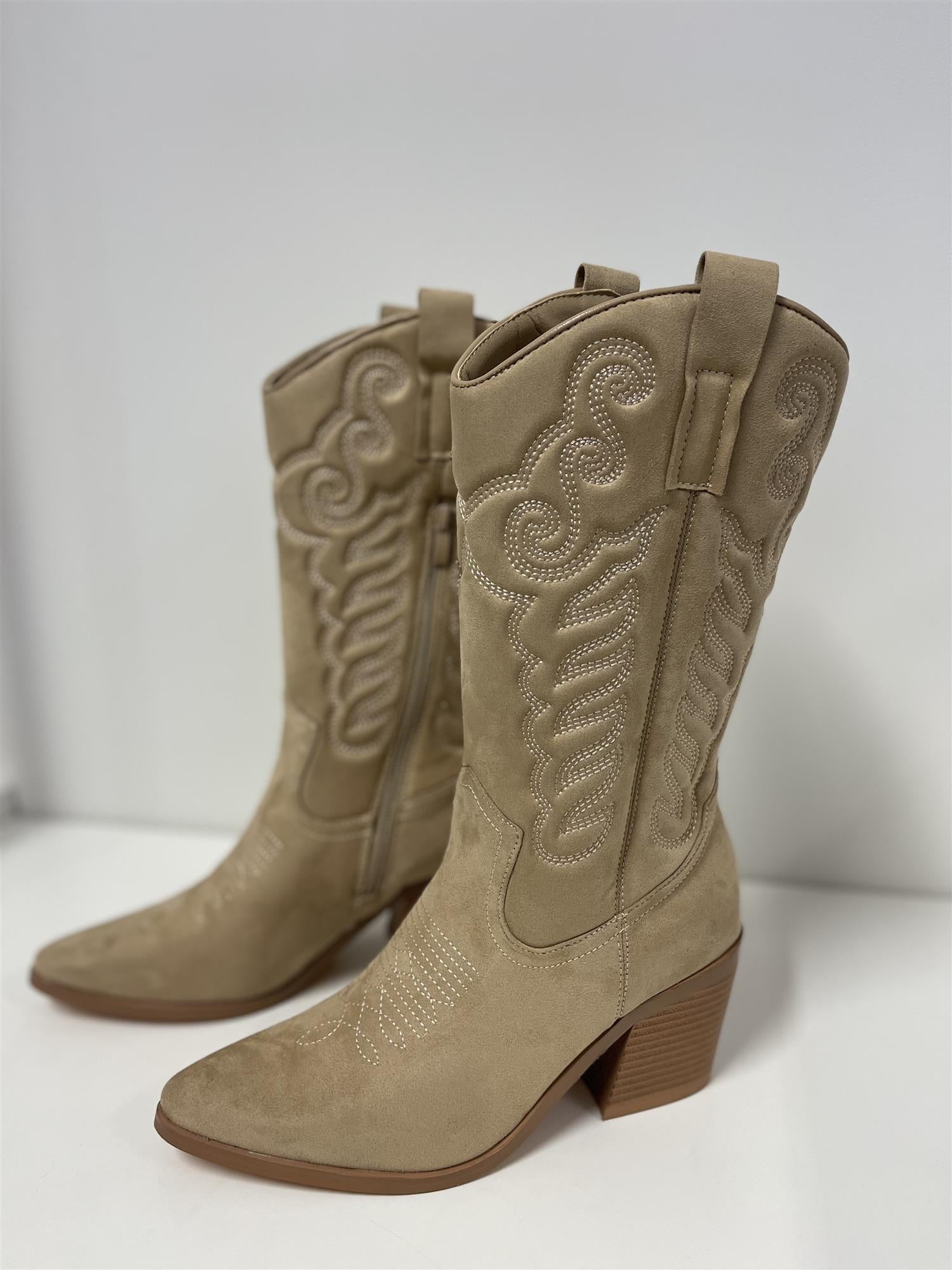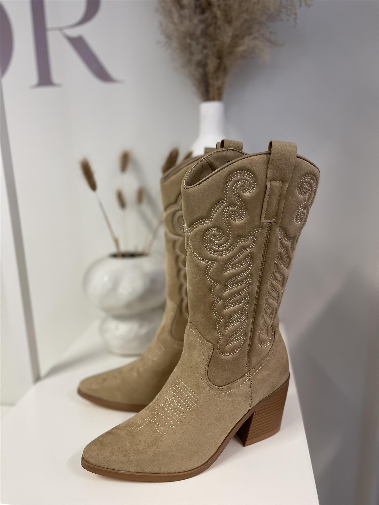 Nora Western Boots Beige