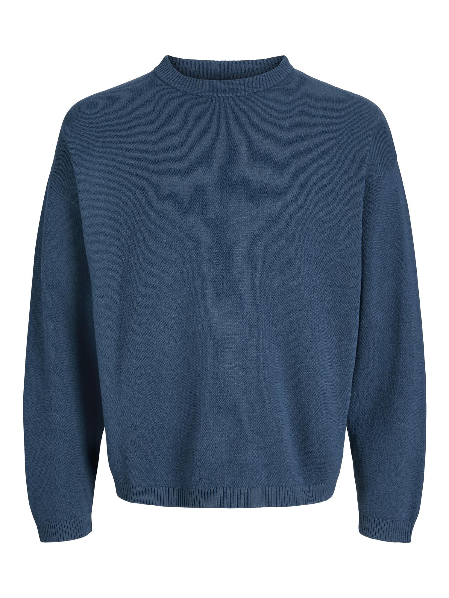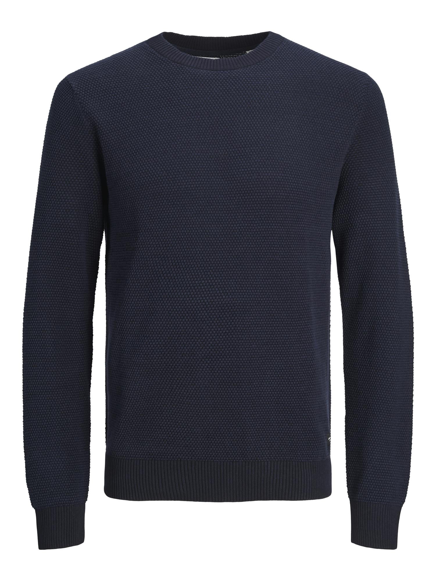 Dane Knit Structure Crew Neck Mørkeblå