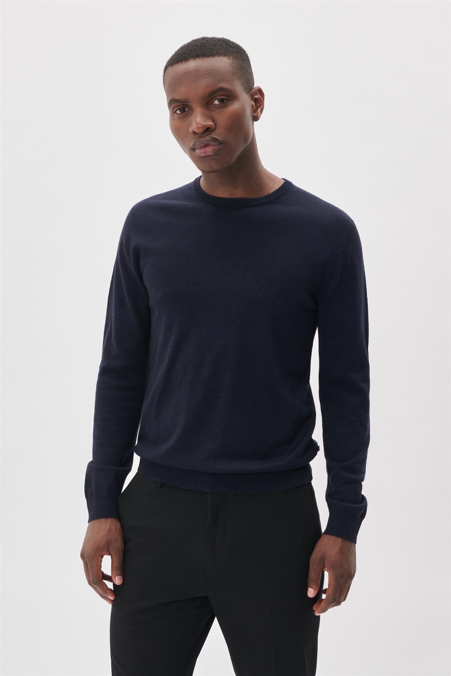Tray Knit Merino Crew Neck Mørkeblå