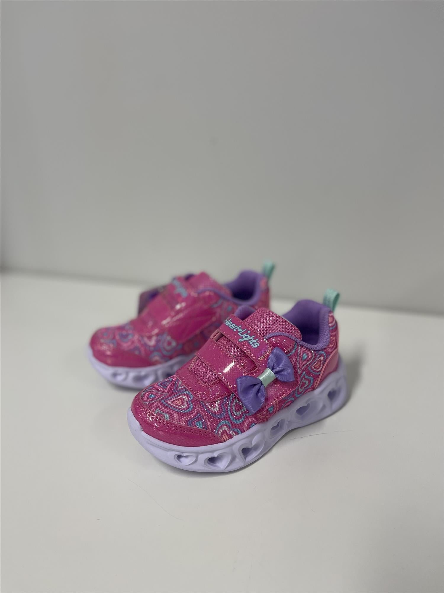 Velg glimmer og glans på magisk vis som gleder når du velger Skechers Heart Lights® – Boogie Land. Dette lyssatte designet har en mesh-overdel med hjerteprint og syntetiske overlegg, en justerbar vriststropp med sløyfedetalj og en mellomsåle med lyseffekter i hjerteform.