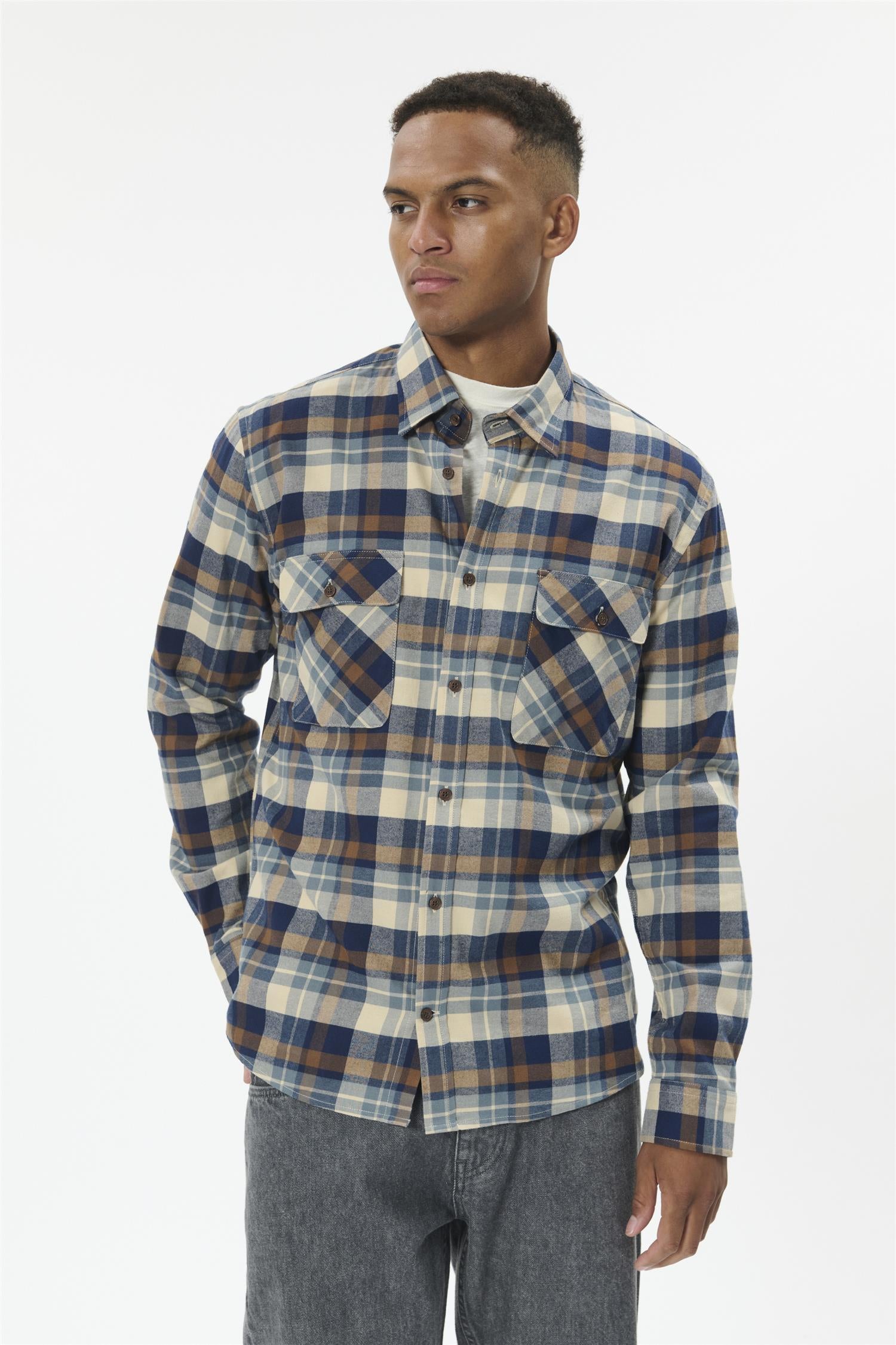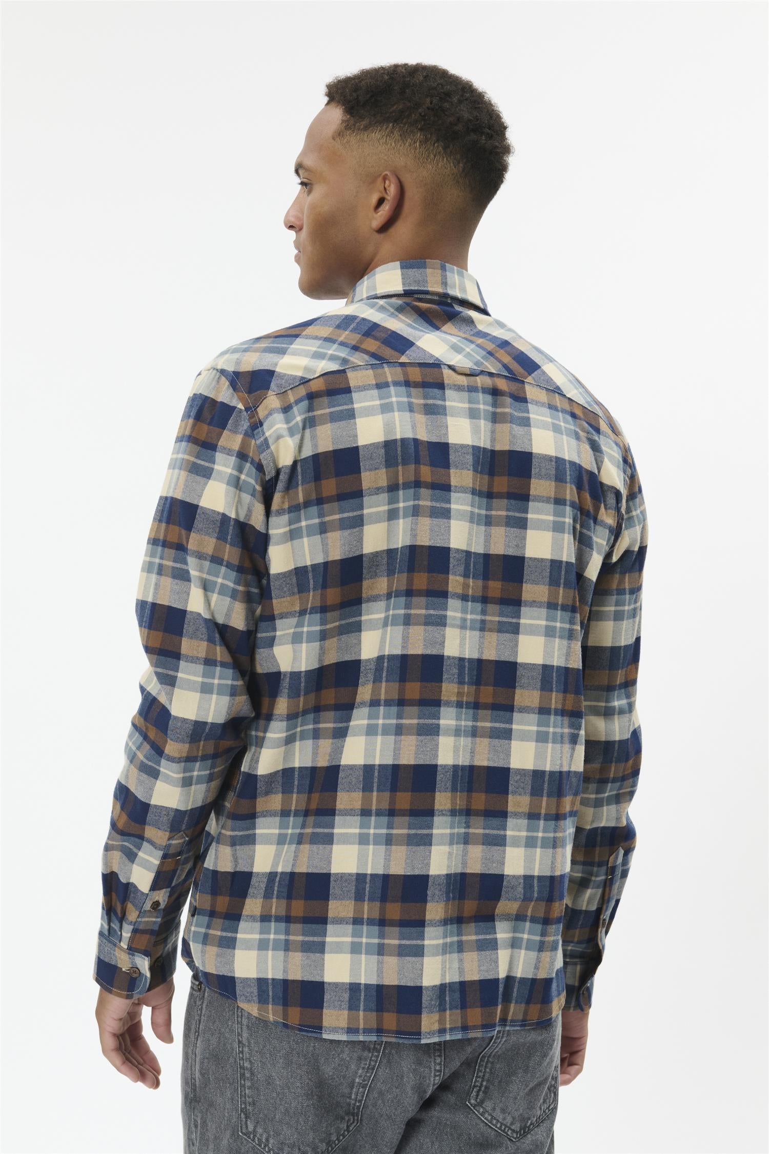 Blu Barkley Flannel X-Mas Shirt Lys Grå Melert