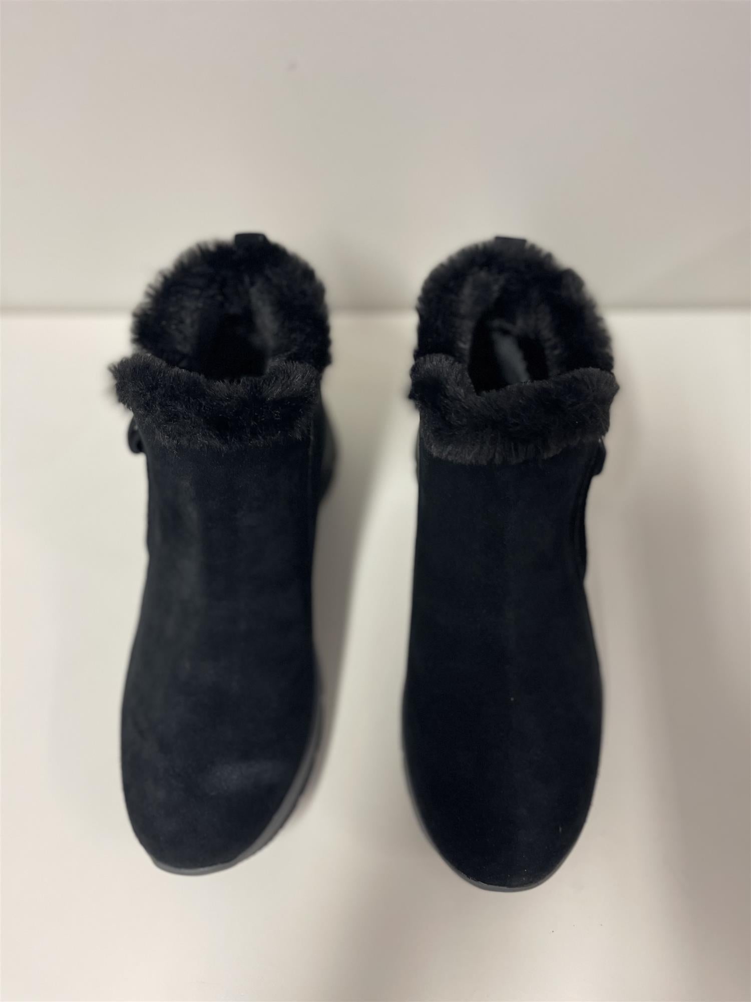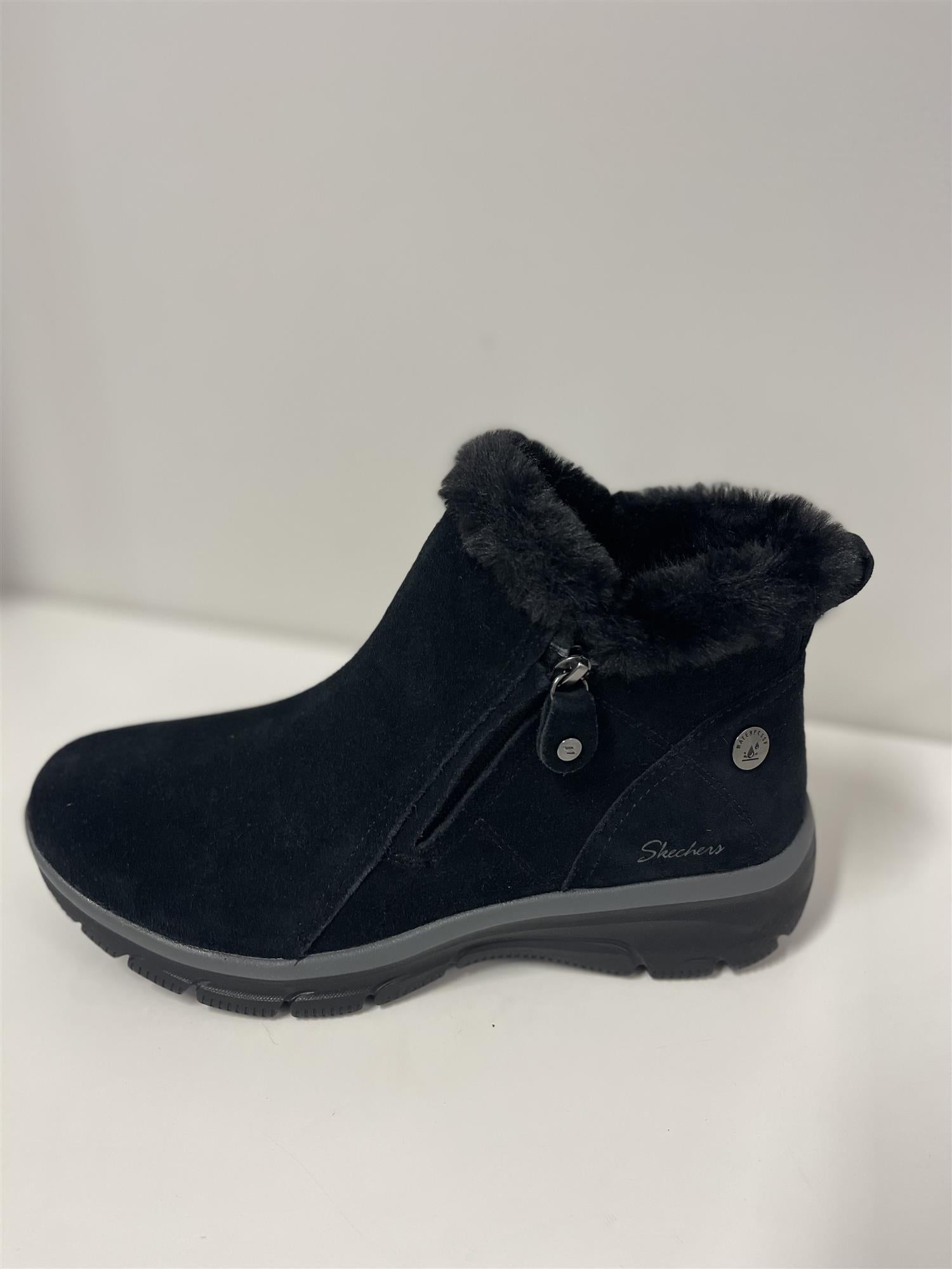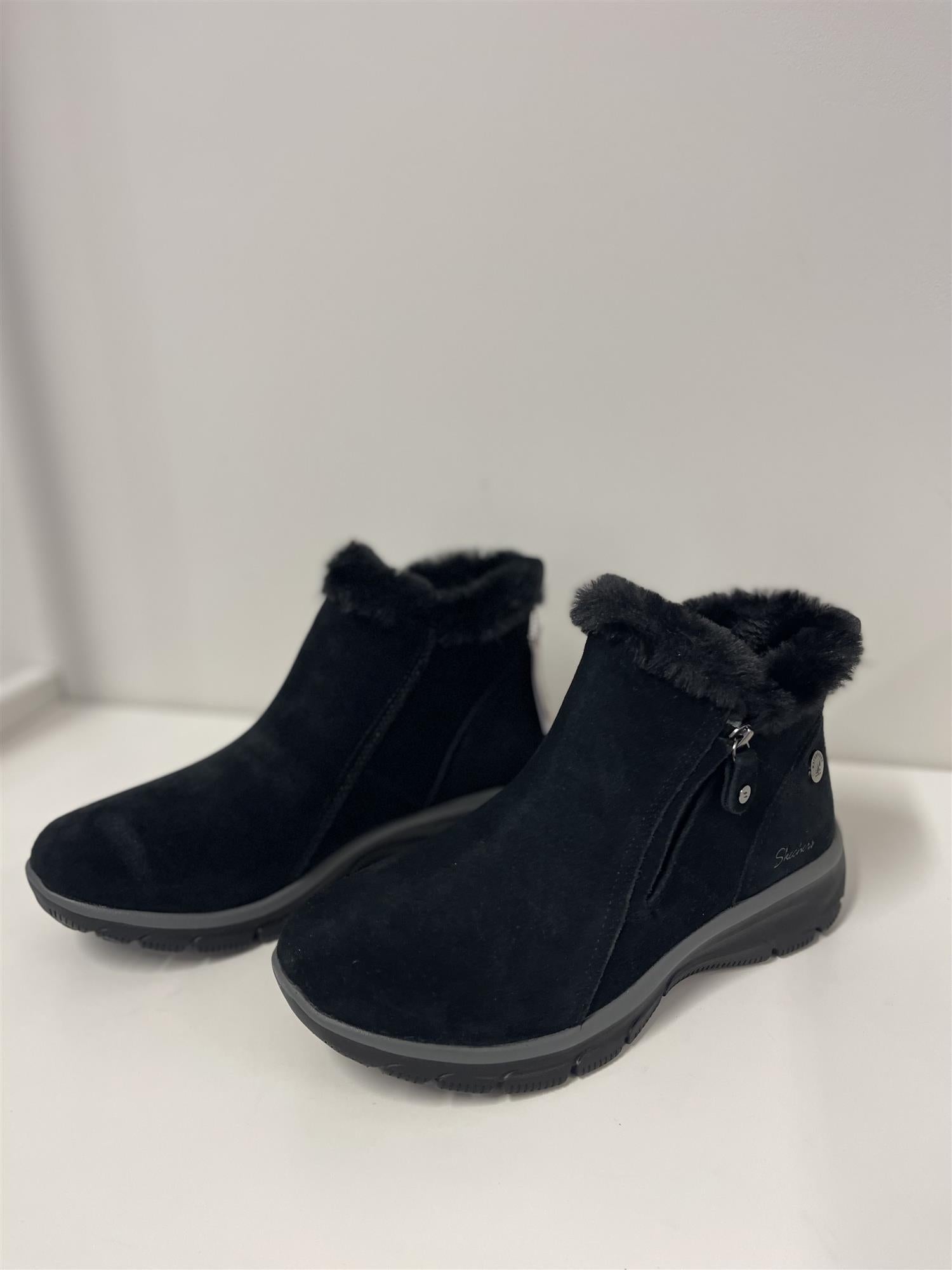 Hold deg varm hele den kalde sesongen med Skechers Relaxed Fit®: Easy Going - High Zip 2. Denne vanntette ankelstøvelen har en overdel av semsket skinn med fuskepelsfôr, glidelåslukking på siden og en Skechers Air-Cooled Memory Foam® polstret innersåle.