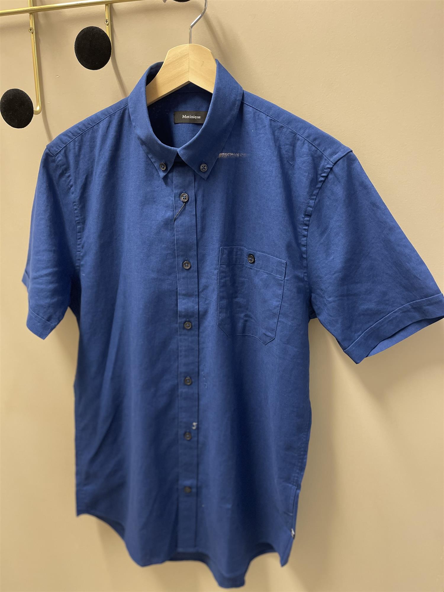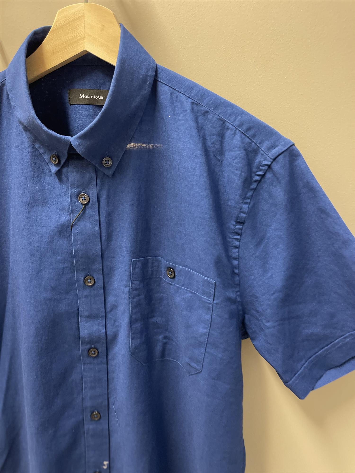 Klassisk pen skjorte i en myk blanding av lin og bomull. Skjorta har krage, korte ermer, knappelukking og en lomme på brystet.