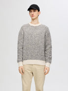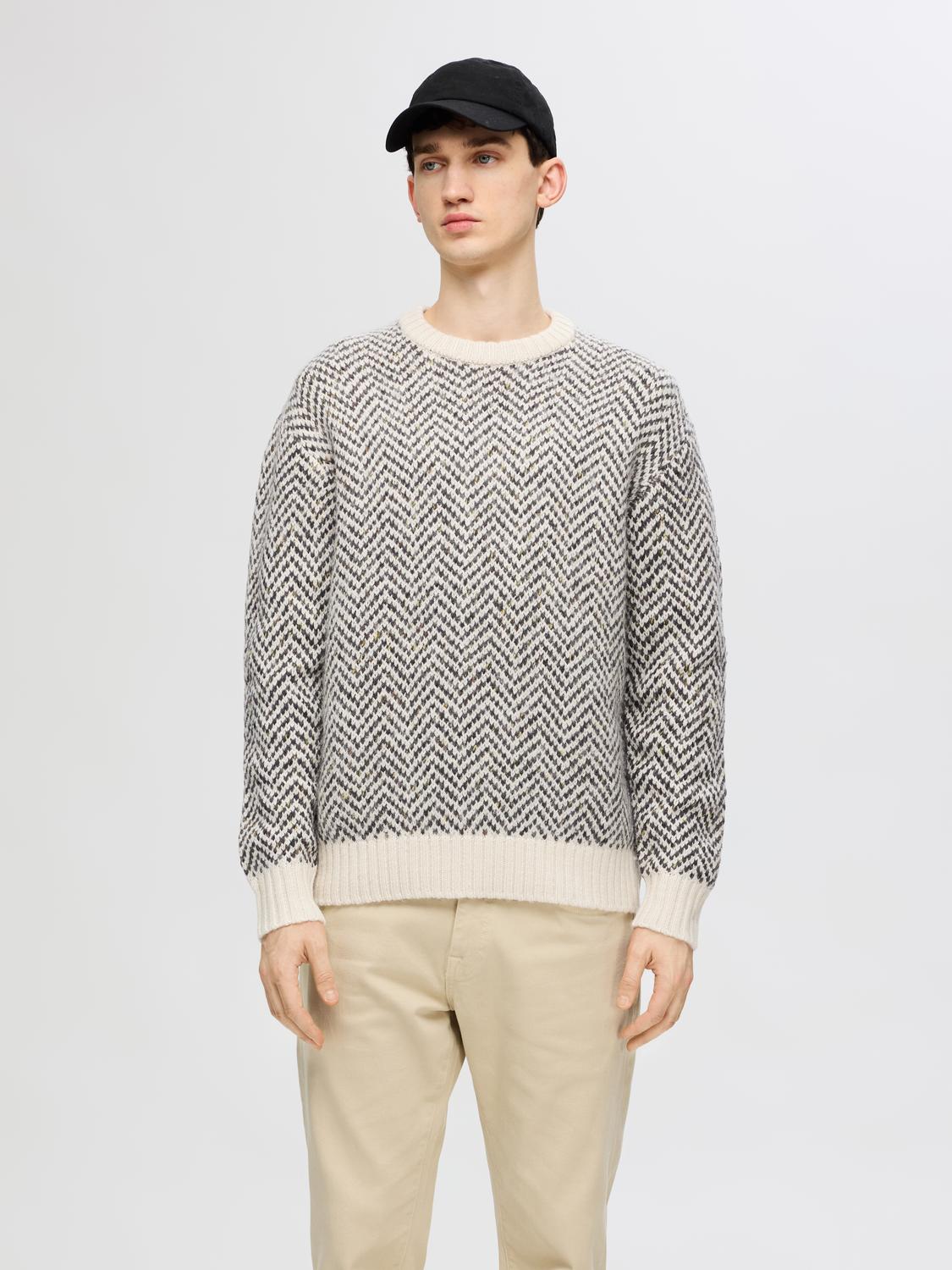Trendy strikket genser i myk ullblanding fra Selected Homme. Harry knit er en genser i en avslappet passform med rund hals. Genseren har et trendy heldekkende herringbone print.
