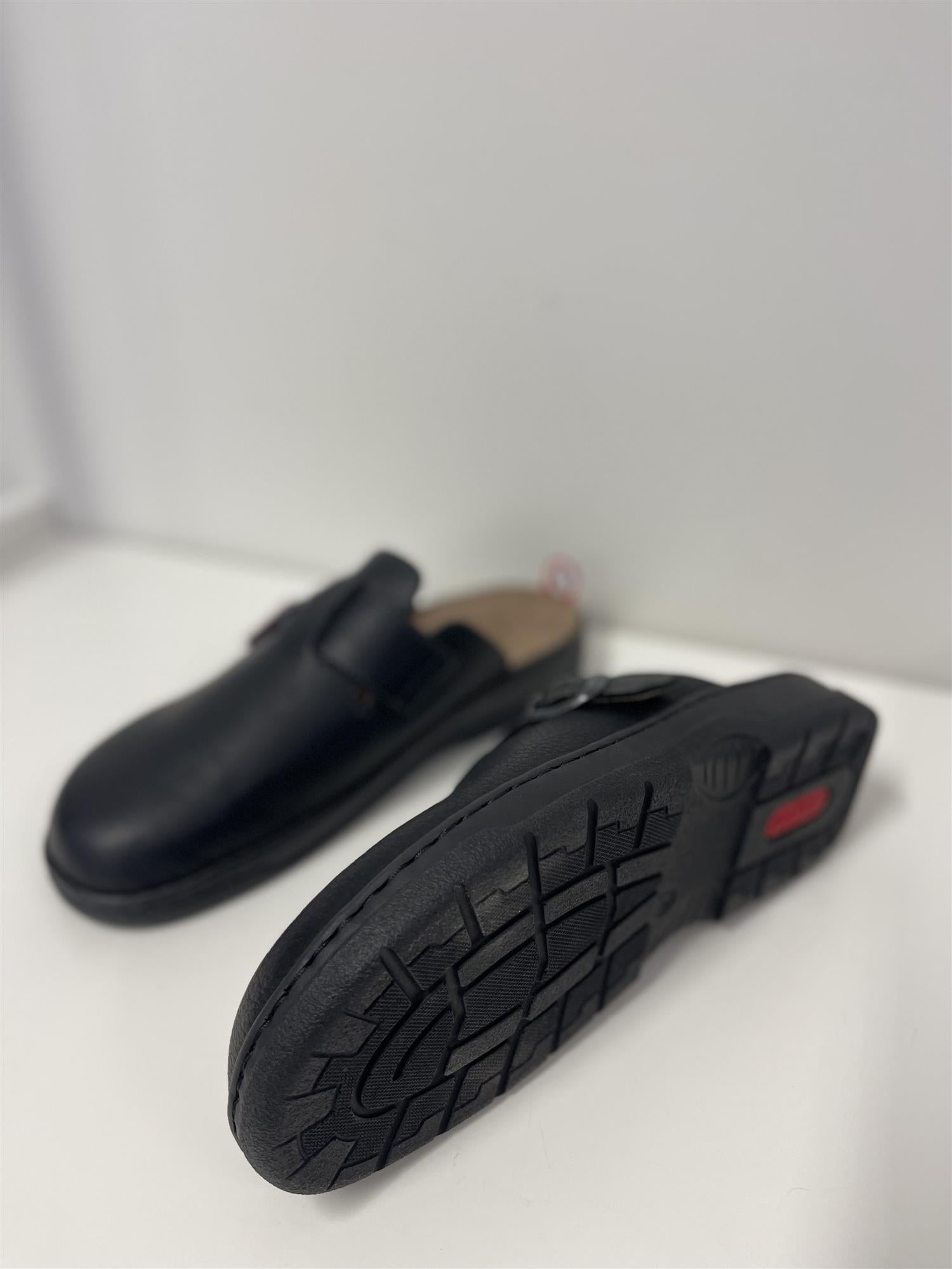 Denne Rieker cloggen er en komfortabel herresko som kombinerer funksjonelt design med eksepsjonell komfort. Den svarte syntetiske overdelen er lettstelt og allsidig, mens den praktiske stroppe lukkingen sikrer en sikker passform og individuell justering. Integrert demping og en uttakbar innersåle gir en behagelig gå opplevelse og gjør skoen egnet for spesialtilpassede såler. Den fleksible gummisålen fullfører designet og tilbyr pålitelig grep for hverdagsbruk, fritidsaktiviteter eller arbeid. En komfortabel følgesvenn for alle som verdsetter både komfort og funksjonalitet