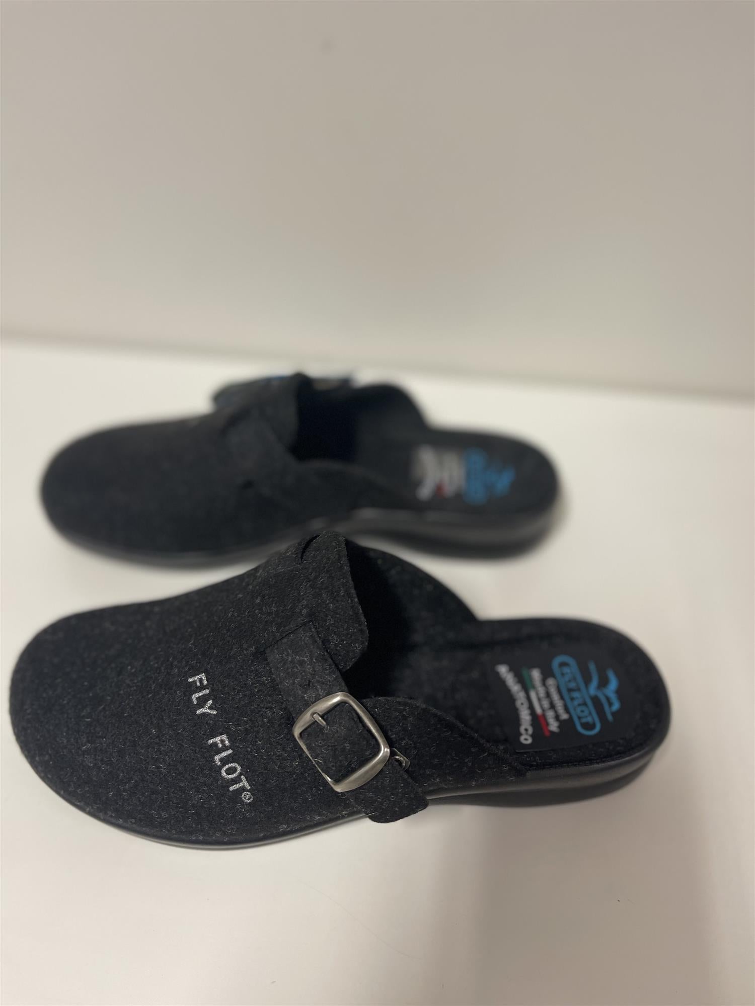Dametøfler i mykt filt materiale. Skoen har en lett anatomisk oppbygd såle og en yttersåle i resirkulert plast som gir et godt grep på de fleste underlag.